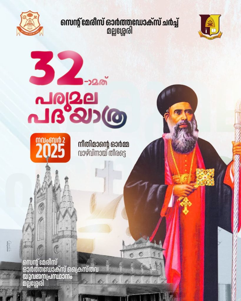 പരിശുദ്ധ പരുമല തിരുമേനിയുടെ കബറിങ്കലേക്കുള്ള 32-ാമത് പദയാത്ര 2025 നവംബർ 2 ന് ഇടവകയിൽ നിന്ന് പുറപ്പെടുന്നു. പങ്കെടുക്കുവാൻ ആഗ്രഹിക്കുന്നവർ ഭാരവാഹികളുടെ പക്കൽ പേര് രജിസ്റ്റർ ചെയ്യേണ്ടതാണ്.